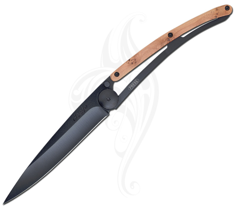 Deejo is a company from France that produces unique knives for everyday use. Thanks to the ultra-light and flat design of the EDC knives, they are easy to carry around and can be stowed in your trouser pocket or jacket. The knives are available in various colours and with many different prints, as well as in different materials such as wood, carbon or polymer. All of them can be operated via a frame lock and can be opened with two hands. The Deejo knives are produced in 3 different sizes: in the small version (15 g/7 cm), in the medium version (27 g/9 cm) or in the large version (37 g/11 cm). The unique designs give the folding knives a unique character and also personalise them. As life-style items, the knives score particularly well in everyday use: whether you want to open a parcel or eat a good steak in a restaurant, the Deejo is always the most stylish option to choose.
