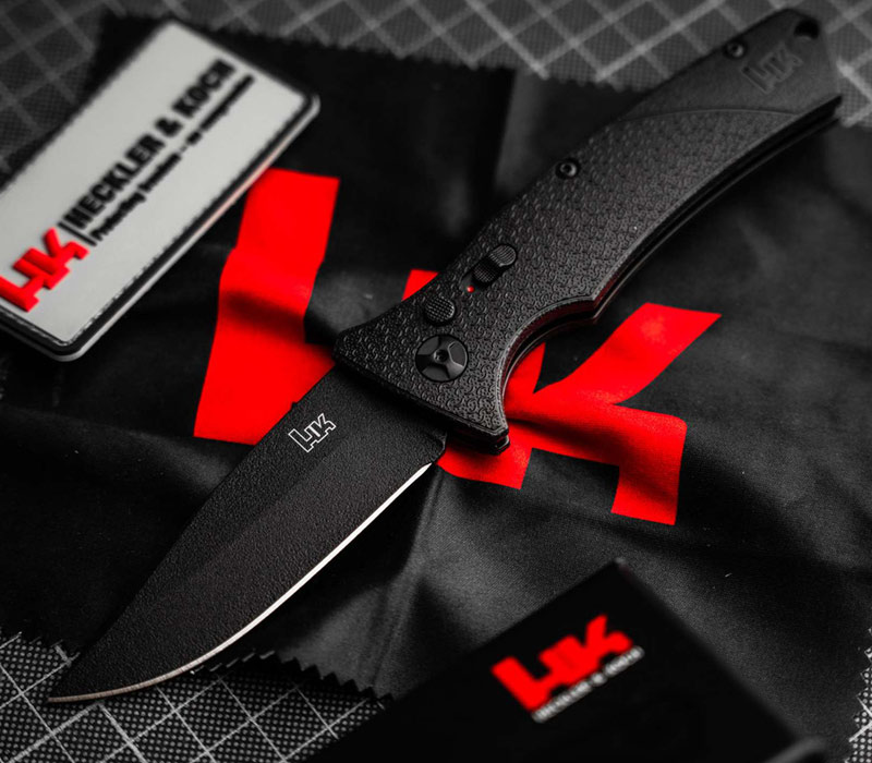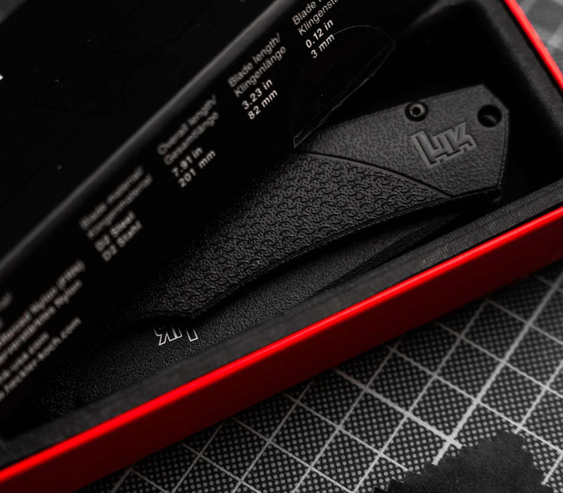 Heckler & Koch pocket knives, knives with tanto and drop-point blades for professionals and knife enthusiasts.