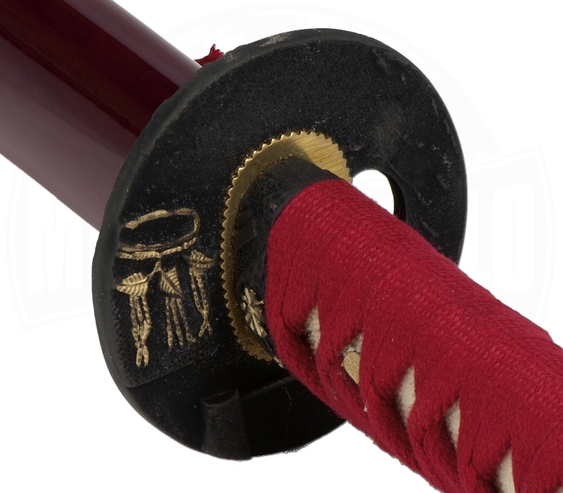 Das wunderschöne rote Katana von John Lee repräsentiert das noch heute sehr belliebte Nôh-Theater aus Japan. Die 72 cm lange Klinge kommt im Shinogi-Zukuri-Stil mit Hohlkehlen und ist aus 1045 Kohlenstoffstahl handgeschmiedet, mit der typischen Hamon-Linie. Der Griff ist aus Holz, mit einer roten, mit Rochenhaut unterlegten, Baumwollengriffwicklung. Das Schwert ist voll zerlegbar und wird mit langer Angel, welche mit 2 Bambusstiften im Griff fixiert ist, geliefert. Die rote hochglanz lackierte Scheide aus Holz dient nicht nur zur Ästhetik, sondern schützt die Klinge auch vor Schmutz. Alle Zierrate sind aus Metall. Jedes originale John Lee Katana wird mit einem Siegel und Zertifikat geliefert. Zusätzlich wird das Nôh Katana mit einer ansprechenden Sammlerbox und einer Schutzhülle geliefert.
