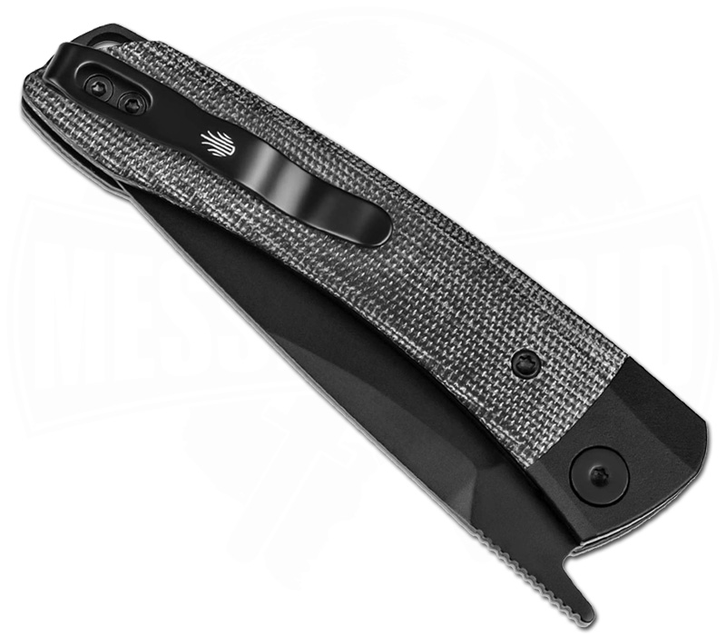 The handle of the KIZER Mini Momo is a real feast for the eyes and impresses with its exceptional feel. Made from black aluminum and Micarta, it not only sits securely in the hand, but also gives the knife an elegant appearance. There is a practical lanyard loop at the end of the handle, which makes it possible to attach a paracord with or without a bead or to use a cord as a drawstring - perfect for individualists who want to personalize their knife.