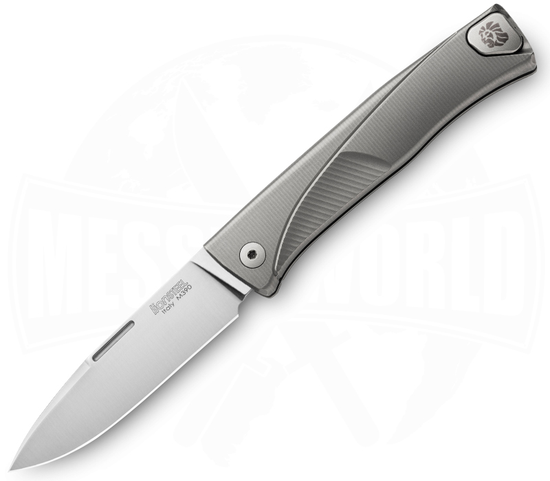 LionSteel manufactures the modern Thrill pocket knife based on a design by the well-known knife designer Michele Pensato, better known as Moletta. The handle of this high-quality slipjoint pocket knife is CNC-milled from a single, solid block of titanium and feels fantastic in the hand. The extremely sturdy construction is equipped with a retractable clip. The LionSteel logo is engraved on a small plate at the end of the handle. The satin-finished blade is made of the best powder-metallurgical M390 Böhler steel, which is known for its wear resistance and is extremely corrosion-resistant. The opening with the nail nick is supported by an IKBS ball bearing, which ensures a smooth action. With a total closed length of 10.5 cm and a weight of 85 g, it can be easily stowed in a trouser pocket, making it a good everyday companion.