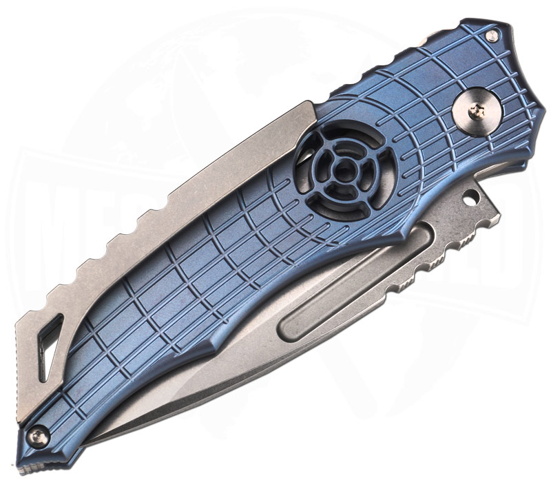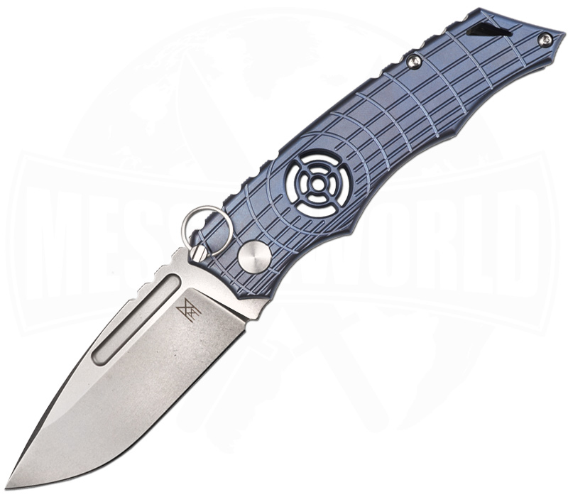 Ein besonderes Merkmal des Shield Sights Folders ist der innovative Sicherungspin, der das Messer im Handumdrehen von einem Slipjoint zu einem feststehenden Messer umfunktioniert. Dieses Feature bietet zusätzliche Sicherheit und Flexibilität in verschiedenen Situationen, ohne die Handhabung zu erschweren. Dank der Slipjoint-Konstruktion, die keine Arretierung hat, ist das Messer auch in Ländern wie Großbritannien legal tragbar. Die aufwendig gefrästen Griffschalen bestehen aus robustem Titan und sind in einem eleganten Blau gehalten, was dem Messer eine moderne und stilvolle Optik verleiht. Die Griffschalen bieten eine ausgezeichnete Ergonomie und ermöglichen einen sicheren Halt, selbst bei längeren Einsätzen. Trotz seiner soliden Bauweise bleibt das Messer mit einem Gewicht von 118,9 Gramm angenehm leicht und tragbar.