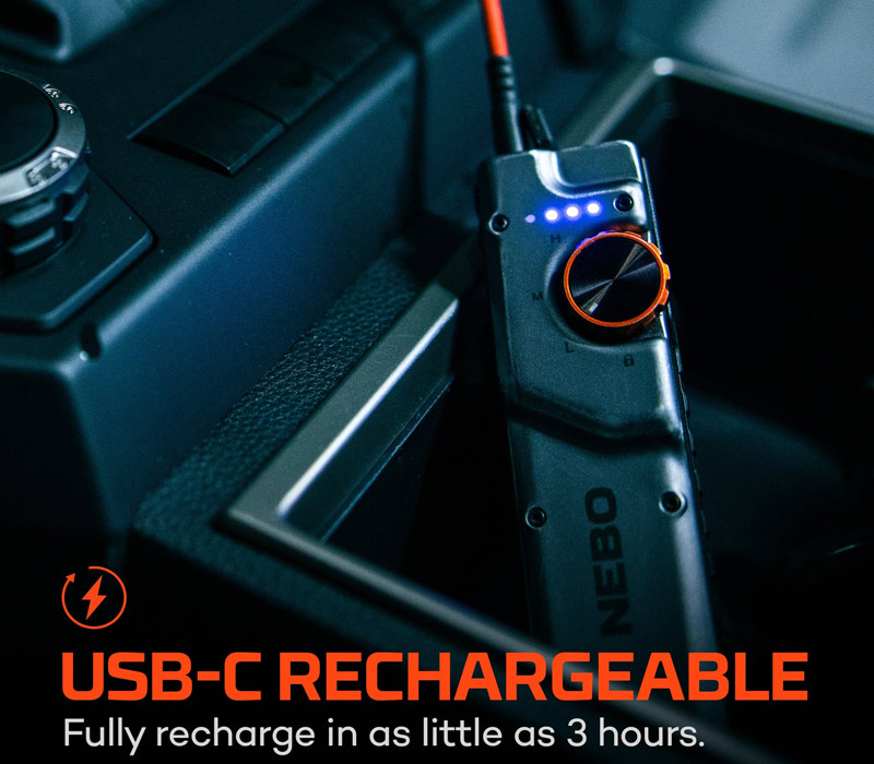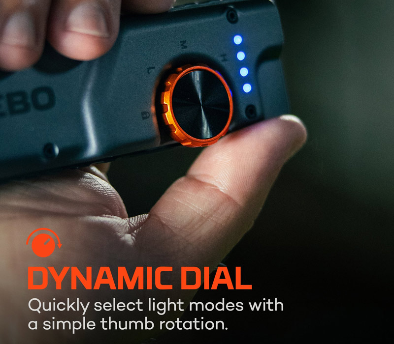Ausgestattet mit zwei leistungsstarken LEDs bietet die NEBO Edge 2K fünf verschiedene Leuchtmodi, die sich mühelos per Drehrad auswählen lassen. Der Turbo-Modus liefert kurzzeitig bis zu 2.000 Lumen und erreicht eine Leuchtweite von 144 Metern, bevor das Licht automatisch in den vorherigen Modus zurückkehrt, um Überhitzung zu vermeiden. Mit Smart Power Control™ (SPC) sorgt die Taschenlampe für eine optimale Energieverteilung und eine konstante Lichtleistung in allen Stufen.