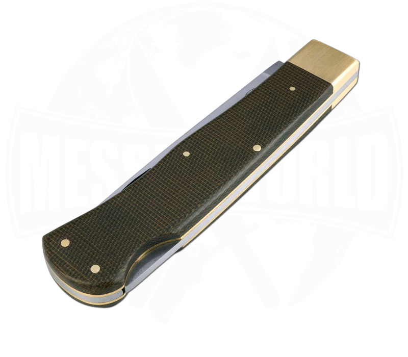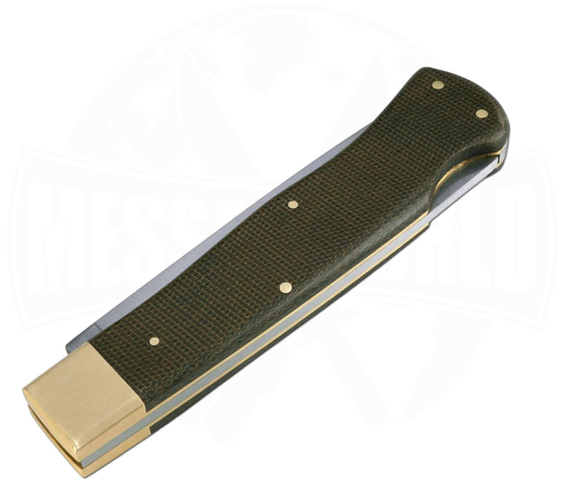 Massive Messingbacken, Erl und Nieten runden das Erscheinungsbild ab und verleihen dem Messer seine klassische, hochwertige Anmutung.