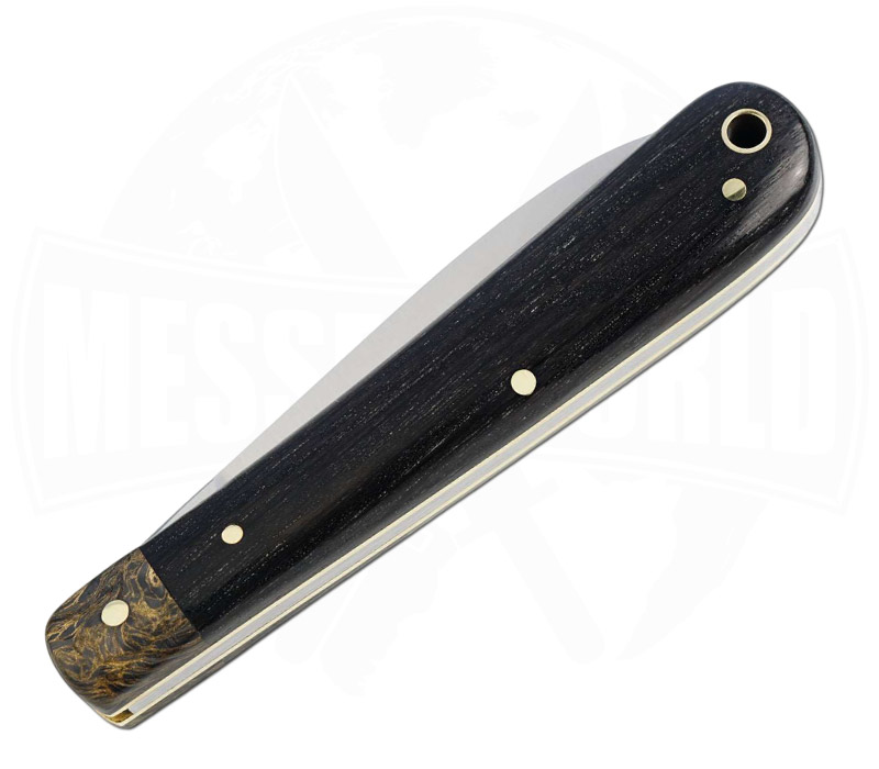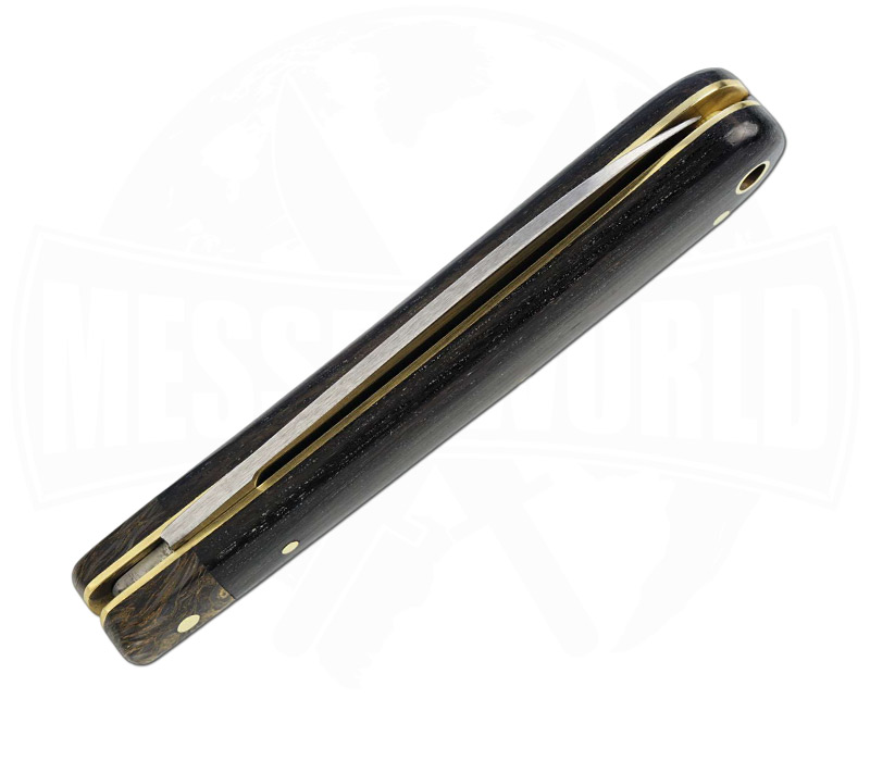 Der Griff aus stabilisierter Mooreiche bringt jahrhundertealte Natur in ein modernes EDC-Format. Dunkel, warm und individuell gemasert, wird jedes Stück zu einem Unikat. Die Carbonbacken mit Messing setzen einen feinen Akzent und sorgen zugleich für Stabilität und Balance.
