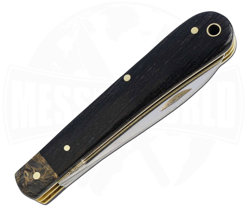 Der Griff aus stabilisierter Mooreiche trägt echte Erdgeschichte in sich. Über Jahrhunderte unter Wasser und Erde gereift, wird das Holz in der Otter-Manufaktur behutsam stabilisiert und neu interpretiert. Jede Maserung erzählt ihre eigene Geschichte. Ergänzt wird der Griff durch Carbonbacken mit Messing, die dem Messer eine moderne, wertige Note verleiht.