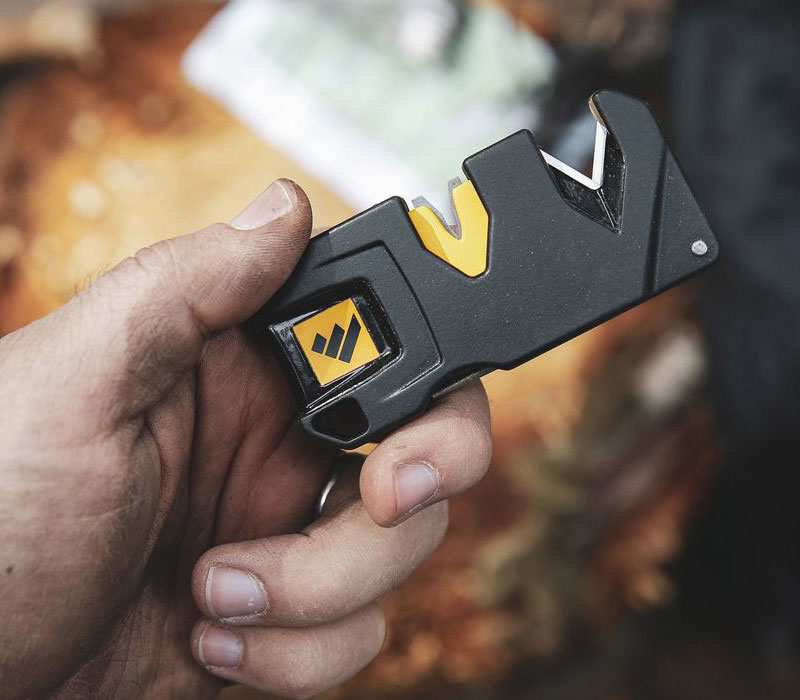 The Work Sharp Pivot Plus Knife Sharpener is a handy sharpening system that can be used to reliably and safely resharpen almost any tool. With the two crossed carbide elements, a basic sharpening is produced with just a few strokes, which is then finely honed with the ceramic elements, which are also crossed, and produces an excellent utility sharpness. The grinding elements are spring-loaded, which allows them to adapt perfectly to the respective blade and thus deliver a consistently good grinding result. With a fold-out conical diamond sharpener, serrations can also be resharpened. Thanks to its compact size, the combi sharpener can be carried comfortably in your pocket, luggage or tool box to always be at hand at the right moment.