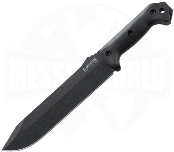Du bist ein Fan von riesigen Bowie-Messern? Na dann passt das Ka-Bar Becker Combat Bowie BK9 ja perfekt zu dir! Denn das von Ethan Becker entworfene Outdoor-Messer lässt schon mal daran zweifeln, ob man jetzt ein Messer oder schon eine kleine Machete mit sich trägt. Mit einer Klingenlänge von unglaublichen 22,9 cm ist das BK9 genau das richtige Werkzeug für die richtig schweren Aufgaben im Outdoorbereich. Auch als Heavy-Duty Tool im Bereich der Einsatzmesser fühlt sich das Becker bestens aufgehoben. Der stabile Full-Tang-Bau besteht aus scharfem 1095-Cro-Van Kohlenstoffstahl, welcher zum Schutz vor Kratzern und Korrosion mit einer schwarzen Klingenbeschichtung ausgestattet ist. Der 4,8 mm starke Klingenrücken macht zudem deutlich: Das Combat hält so einiger Belastung stand. Der Griff besteht aus Ultramid Kunststoff, welcher dem Grivory sehr ähnelt. Als Tragemöglichkeit steht dem Becker eine Polyesterscheide zur Seite.