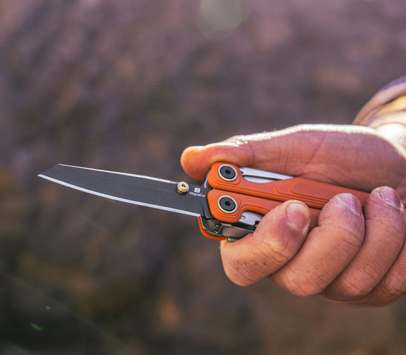 Herzstück des Wave Alpha ist die neue Reverse-Tanto-Klinge aus CPM MagnaCut-Stahl. Ultrahart, korrosionsbeständig und mit beeindruckender Schnitthaltigkeit – dieser Premiumstahl setzt neue Maßstäbe in der Multitool-Welt. Mit dem praktischen Daumenpin lässt sich die Klinge blitzschnell und einhändig öffnen – jederzeit einsatzbereit, wenn’s drauf ankommt.