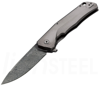 Die aus M390 Stahl gefertigte Klinge öffnet durch das IKBS-Kugellager butterweich und wird verriegelt mit dem Titan-Framelock. Der Titanclip und der Titan-Backspacer sind dreidimensional gefräst. Die vordere Griffschale besteht aus schwarzem G-10, die hintere aus Titan.