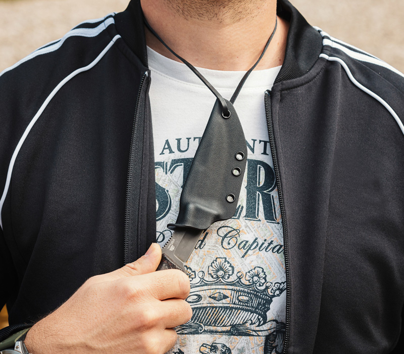 Wer Besitzer des MKM TPF Defense Messers ist, der sollte sich diese schicke Zubehör einmal genauer ansehen. Die MKM TPF Defense Kydexscheide ist neben der sowieso schon mitgelieferten Lederscheide, eine tolle und vielfältige Tragemöglichkeit für dein feststehendes EDC Messer. Die gegossene Scheide ist passgenau und lässt sich mit dem Lederriemen um den Hals oder über die Lederschlaufen einfach am Gürtel tragen.