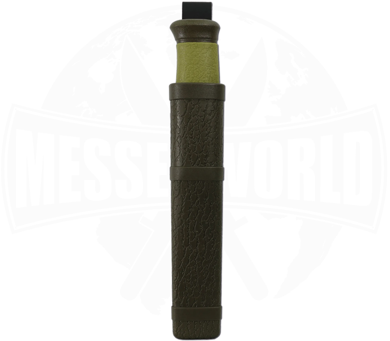 Der ergonomische TPE-Griff liegt sicher und rutschfest in der Hand, selbst wenn es regnet oder die Arbeit im nassen Wald stattfindet. Durch das grün-schwarze Design erhält das Messer einen funktionalen und gleichzeitig natürlichen Look. Die leichte Polymerscheide mit Lederschlaufe ermöglicht ein bequemes Tragen am Gürtel und ist sowohl für Rechts- als auch für Linkshänder geeignet.