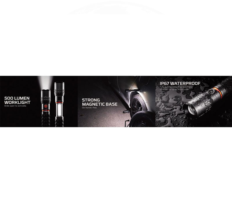 • COB-Arbeitslicht (500 Lumen) – 4 Stunden / 34 Meter
