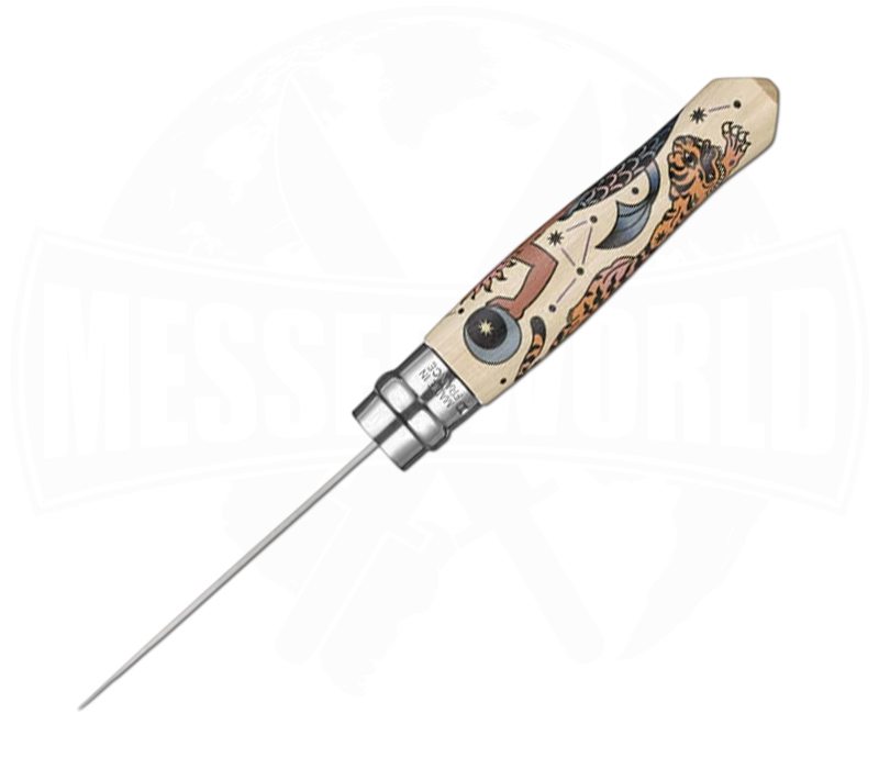 Mit dem Opinel No. 08 Edition Cosmos Dalkafine verschmelzen Kunst, Mythologie und traditionelle Handwerkskunst zu einem außergewöhnlichen Sammlerstück. Die französische Künstlerin Dalkafine inszeniert auf dem Griff eine poetische Begegnung zwischen dem Sternbild des Tigers und dem der Meerjungfrau – ein Sinnbild für das Zusammenspiel von irdischer Kraft und kosmischer Energie.