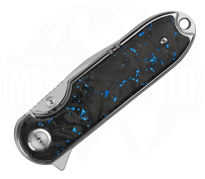 Der Griff aus Blue Shredded Carbon Fiber macht das Nebula Shredded Blue zu einem echten Hingucker. Die faszinierende Struktur des zerschichteten Kohlefasermaterials sorgt für einen glänzenden, blauen Effekt, der sowohl futuristisch als auch elegant wirkt. Der Liner Lock hält die Klinge zuverlässig in Position, während das Messer mit angenehmer Balance in der Hand liegt.