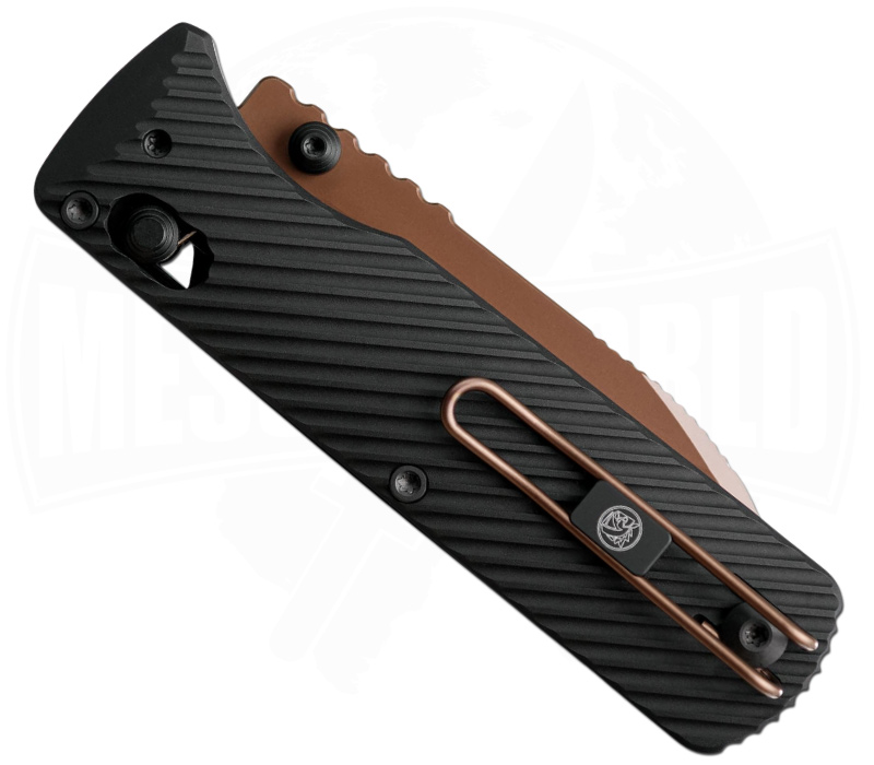 Die 7,4 cm Drop-Point-Klinge aus hochwertigem M390-Stahl ist der Inbegriff von Schärfe und Zuverlässigkeit. Mit ihrem Flachschliff liefert sie präzise Cuts, egal ob du Pakete öffnest, Seile schneidest oder dein Outdoor-Gear justierst. Die edle Copper-Dune-Beschichtung sieht nicht nur atemberaubend aus, sie schützt die Klinge auch zuverlässig vor Korrosion und Kratzern – funktional und stylisch in einem.